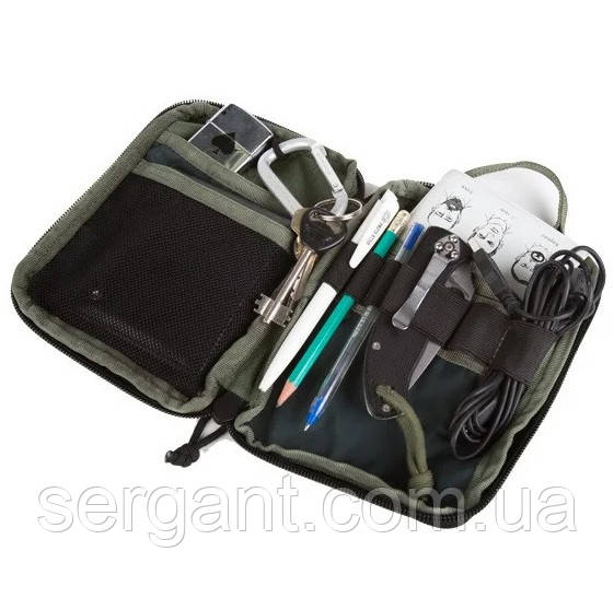 Усередині має кілька відділень для документів, ручок та інструментів.